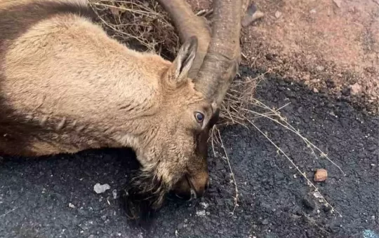 Gümüşhane'de yaban keçisine çarpan otomobilin sürücüsü maddi hasar yaşadı, keçi telef oldu.