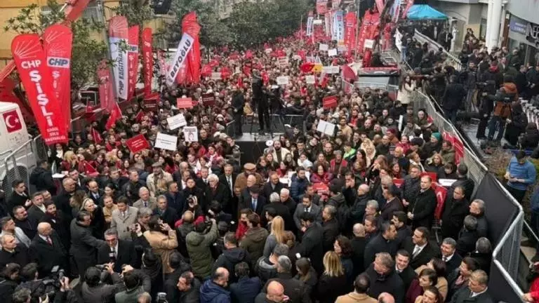 CHP, Beşiktaş Belediye Başkanı Rıza Akpolat’ın suç örgütüne yönelik soruşturma kapsamında gözaltına alınmasının ardından Beşiktaş’ta ‘Halk Buluşması’ düzenledi. Parti yönetimi ve belediye başkanlarının yanı sıra yüzlerce vatandaşın da katıldığı eylemde belediye binası önünde büyük bir kalabalık oluştu. Kalabalık sık sık, “Her yer Beşiktaş, her yer direniş” ve “Hak, hukuk, adalet” sloganları attı.