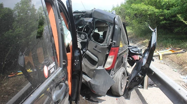 EM Otoyolu Düzce geçişinde emniyet şeridinde duran araca, arkasından gelen başka bir aracın çarpması neticesinde meydana gelen feci kazada 2...