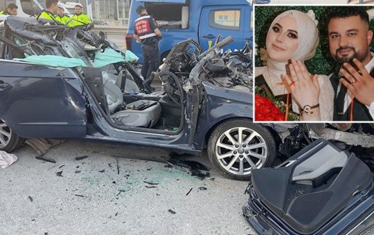 Bursa'da düğün alışverişi yapan nişanlı çift, dönüş yolunda içinde bulundukları lüks otomobilin tıra arkadan çarpması sonucu hayatlarını kaybetti.
