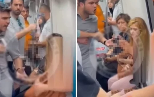 Marmaray'da bir kadın, yanında oturan başörtülü başka bir kadının başörtüsünü çıkarmaya çalıştı. Marmaray'daki diğer yolcular kadına tepki müdahale ederken, bir...